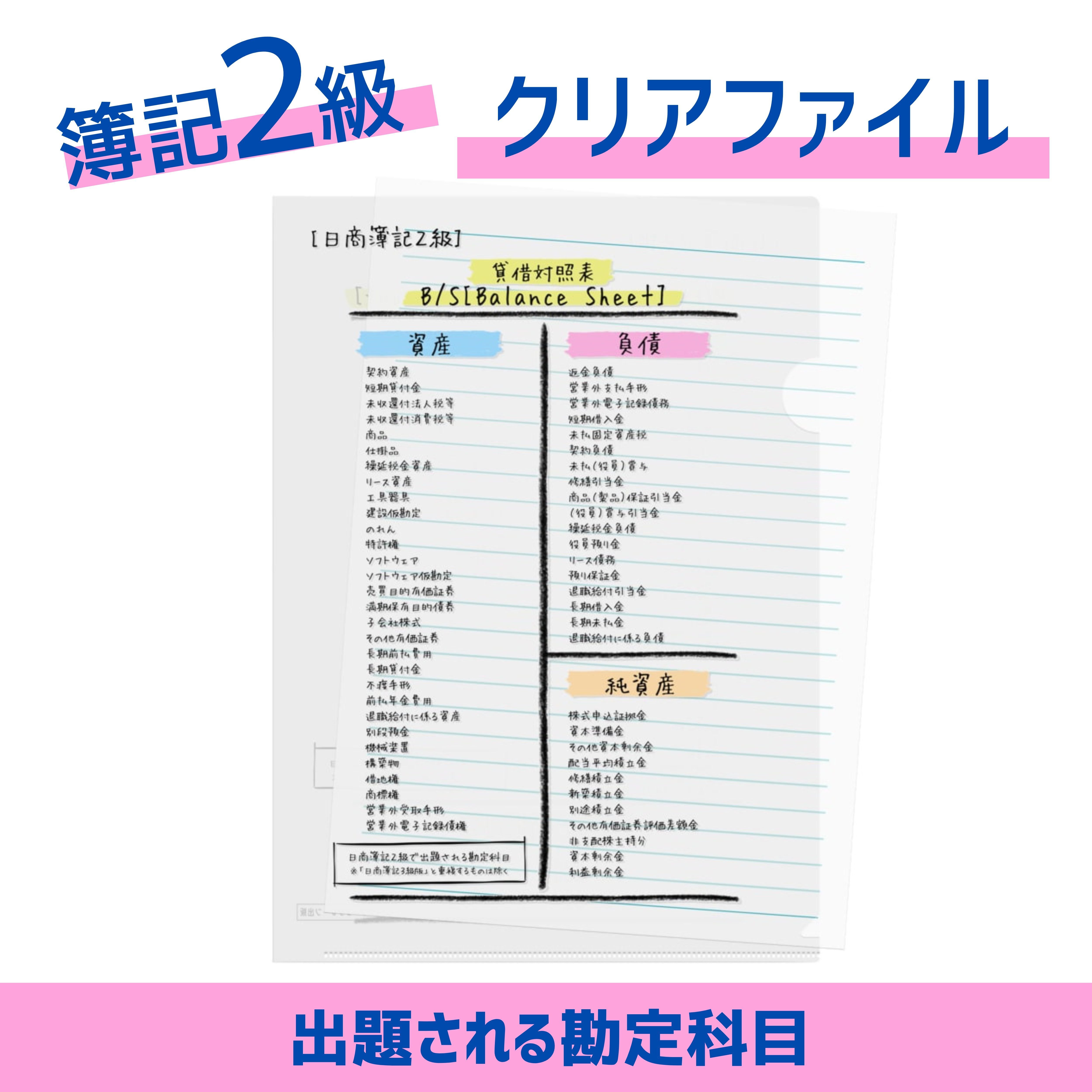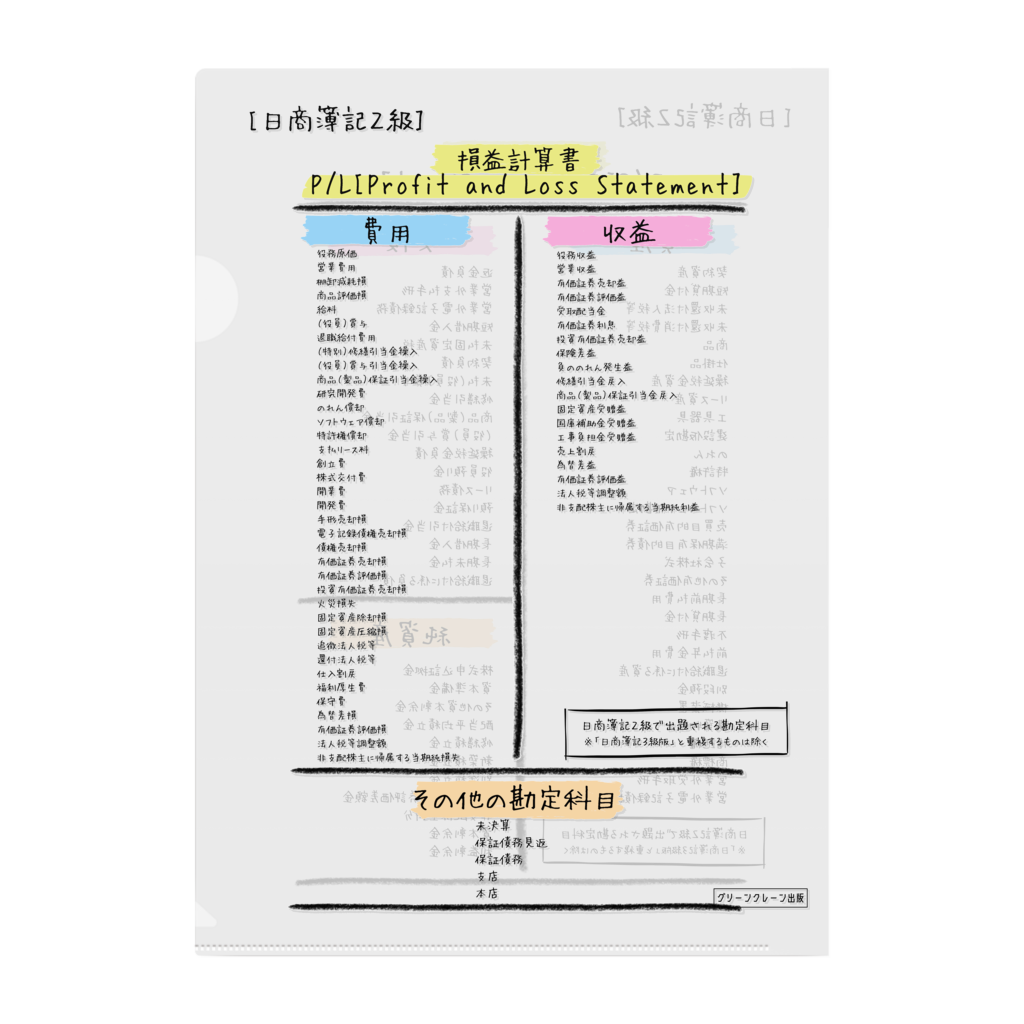【クリアファイル】日商簿記2級で出題される勘定科目、貸借対照表[B/S(Balance Sheet)]、損益計算書[P/L(Profit and Loss Statement)]、財務諸表[F/S(Financial Statements)][簿記2級クリアファイル] | グリーンクレーン出版